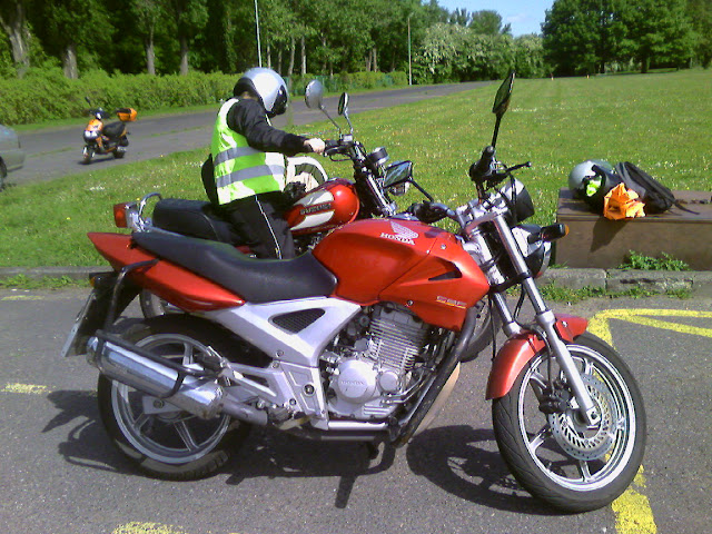 Na kursie były dwa motocykle Suzuki GN 125 - sympatyczny naked, ale jak dla mnie ciut za mały oraz Honda CBF 250. W sam raz! :) Kiedy wreszcie zaliczyłam egzamin wewnętrzny, przyszła pora na państwowy i... skłamałbym mówiąc, że poszło jak z płatka. Trzy podejścia to nie jest powód do dumy, chociaż preferuję wersję moich znajomych twierdzącących, że uwalono mnie, bo jeździłam zbyt dobrze i pewnie ;-) Każdy wierzy w to, co chce :D O swoich porażkach i ostatecznie sukcesie opisałam na Forum Motocyklistów w wątku Oblałam oraz Odlewnicza - Zdałam. Wszystkim, którzy kombinują, żeby na lewo zrobić prawko (kupić) powiem tyle - nie ma to jak satysfakcja, że się zdało samodzielnie. Przynajmniej jest co wspominać :)